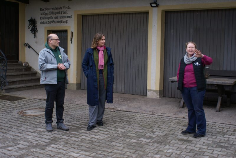 Heute waren wir zusammen mit MdL Laura Weber auf dem Biohof der Famile Scheuerer in Haderlsdorf zu Besuch. Nach einem kurzen Input von Laura Weber, verbraucherpolitische Sprecherin der Grünen Landtagsfraktion, haben uns Andrea und Herbert Scheuerer ihren Hof, die Tiere und ihren neuen Hofladen gezeigt. Wir konnten erfahren, wie sehr der Familie das Wohl der Tiere und die kurzen Wege zu den Kundeinnen und Kunden am Herzen liegen. Am Ende gab es noch die Möglichkeit zum Austausch bei leckerem Kaffee und Kuchen sowie eigenem Apfelsaft. Herzlichen Dank an Laura Weber, die Familie Scheuerer und die zahlreichen Besucherinnen und Besucher!
