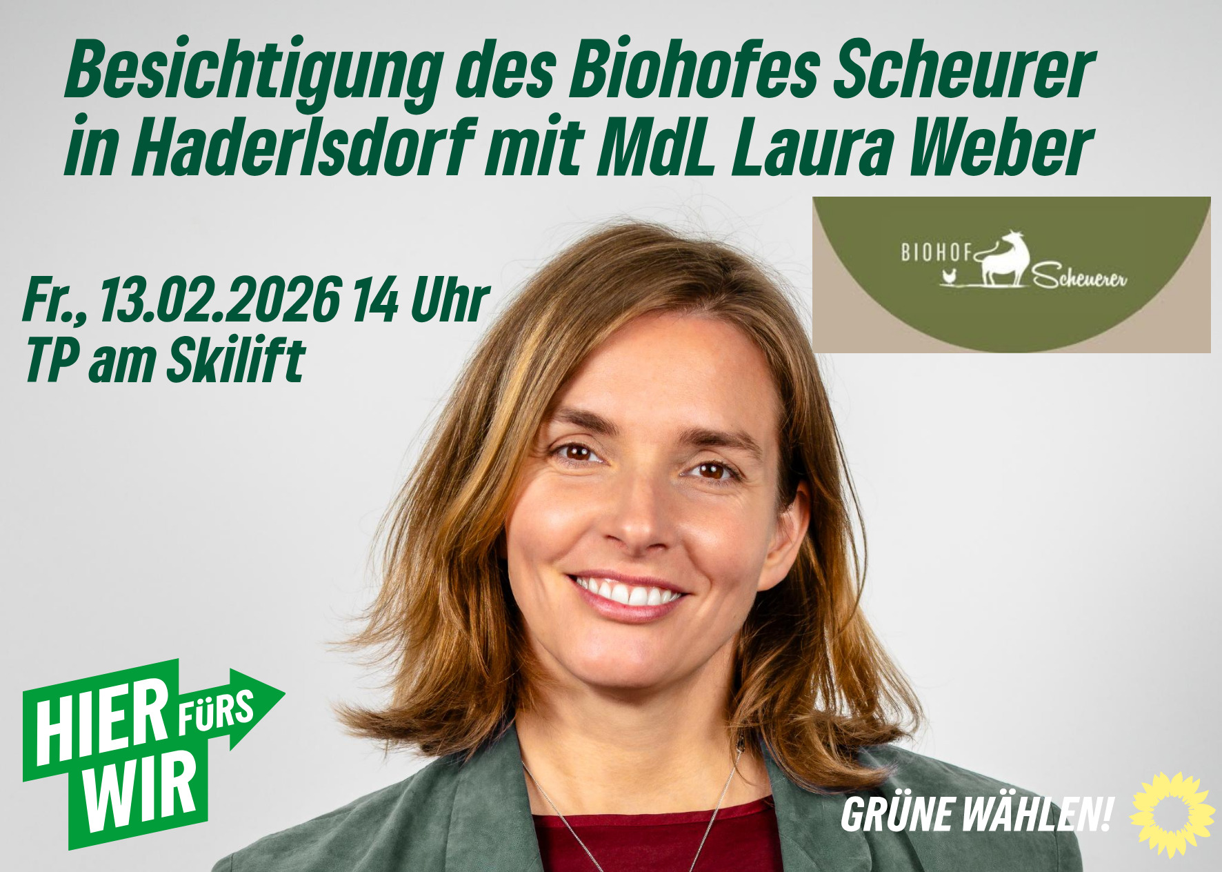 Heute waren wir zusammen mit MdL Laura Weber auf dem Biohof der Famile Scheuerer in Haderlsdorf zu Besuch. Nach einem kurzen Input von Laura Weber, verbraucherpolitische Sprecherin der Grünen Landtagsfraktion, haben uns Andrea und Herbert Scheuerer ihren Hof, die Tiere und ihren neuen Hofladen gezeigt. Wir konnten erfahren, wie sehr der Familie das Wohl der Tiere und die kurzen Wege zu den Kundeinnen und Kunden am Herzen liegen. Am Ende gab es noch die Möglichkeit zum Austausch bei leckerem Kaffee und Kuchen sowie eigenem Apfelsaft. Herzlichen Dank an Laura Weber, die Familie Scheuerer und die zahlreichen Besucherinnen und Besucher!